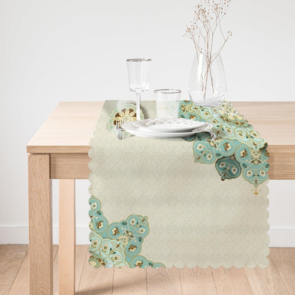 Mandala Design Mubarak Ramadan Motif Runner and Cushion Pillow Cover Set