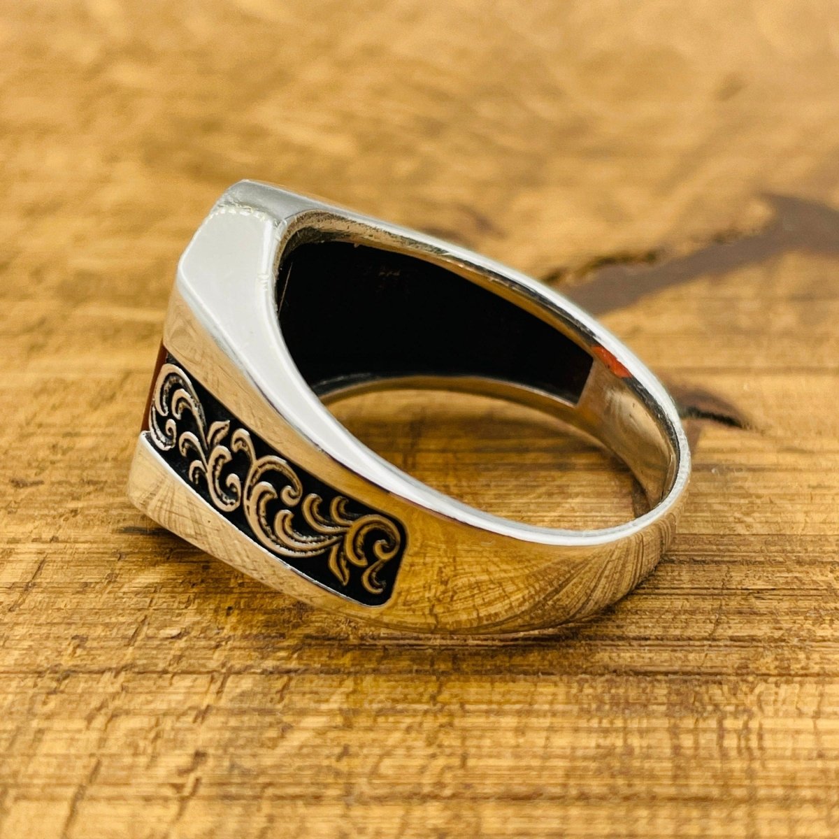 Features:- Handcrafted Ottoman-style design with a red square agate stone.