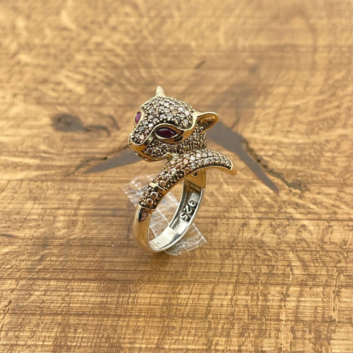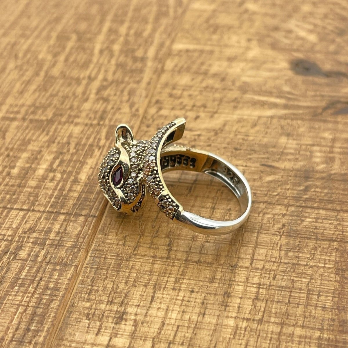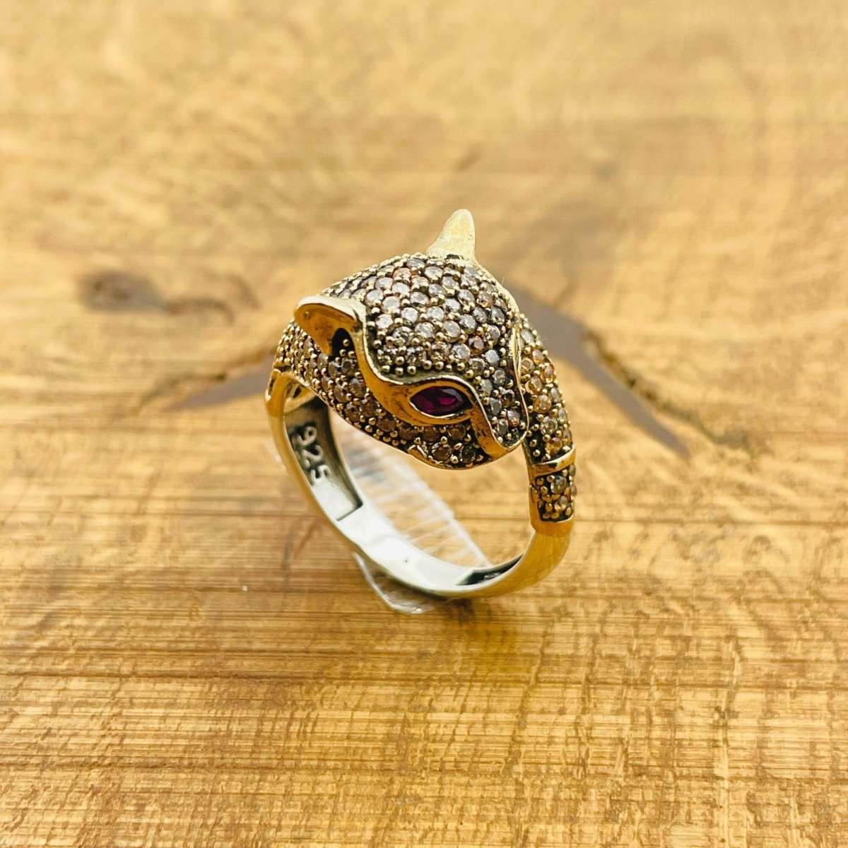 • Striking Citrine Stone: Features a vibrant yellow citrine stone with a bold tiger head design.