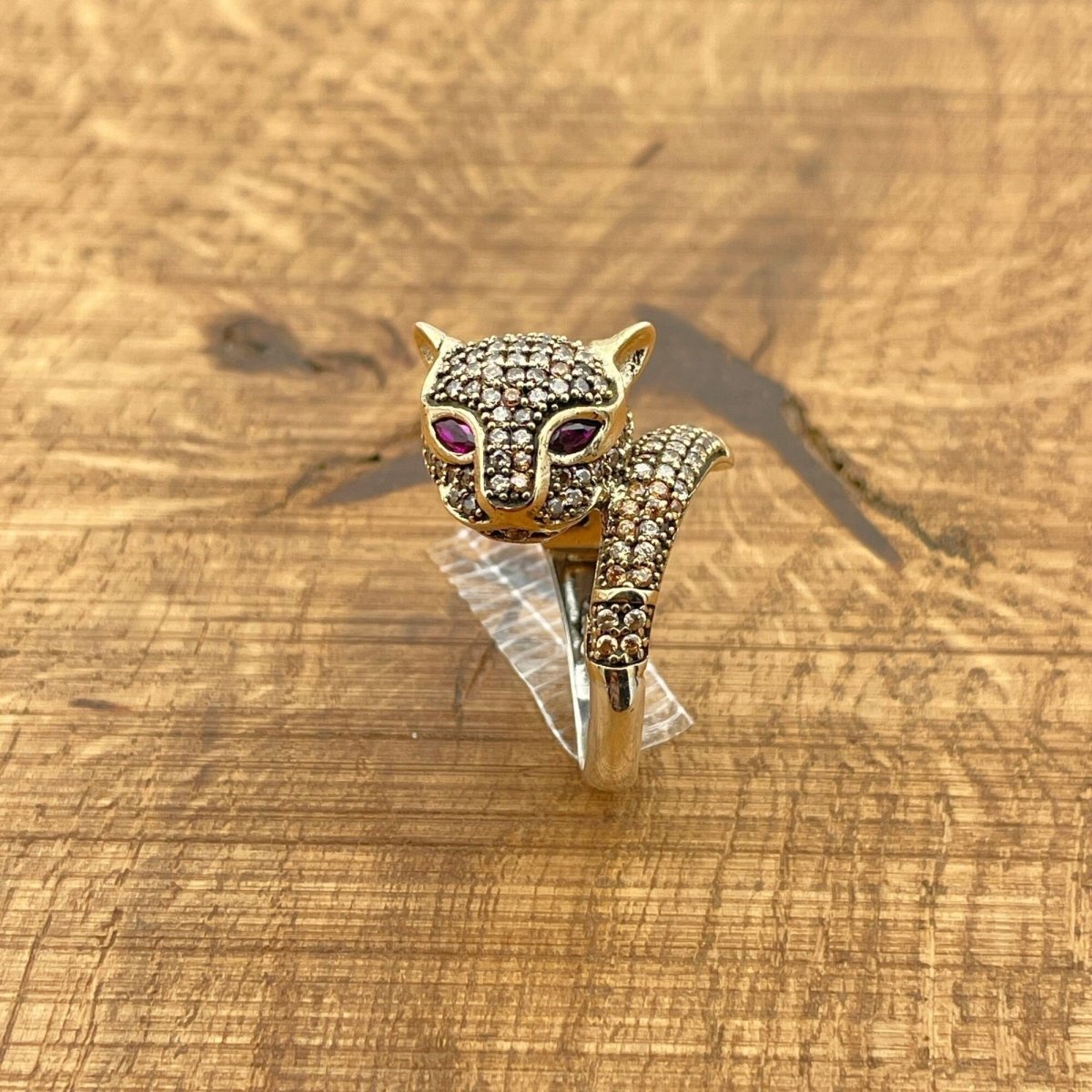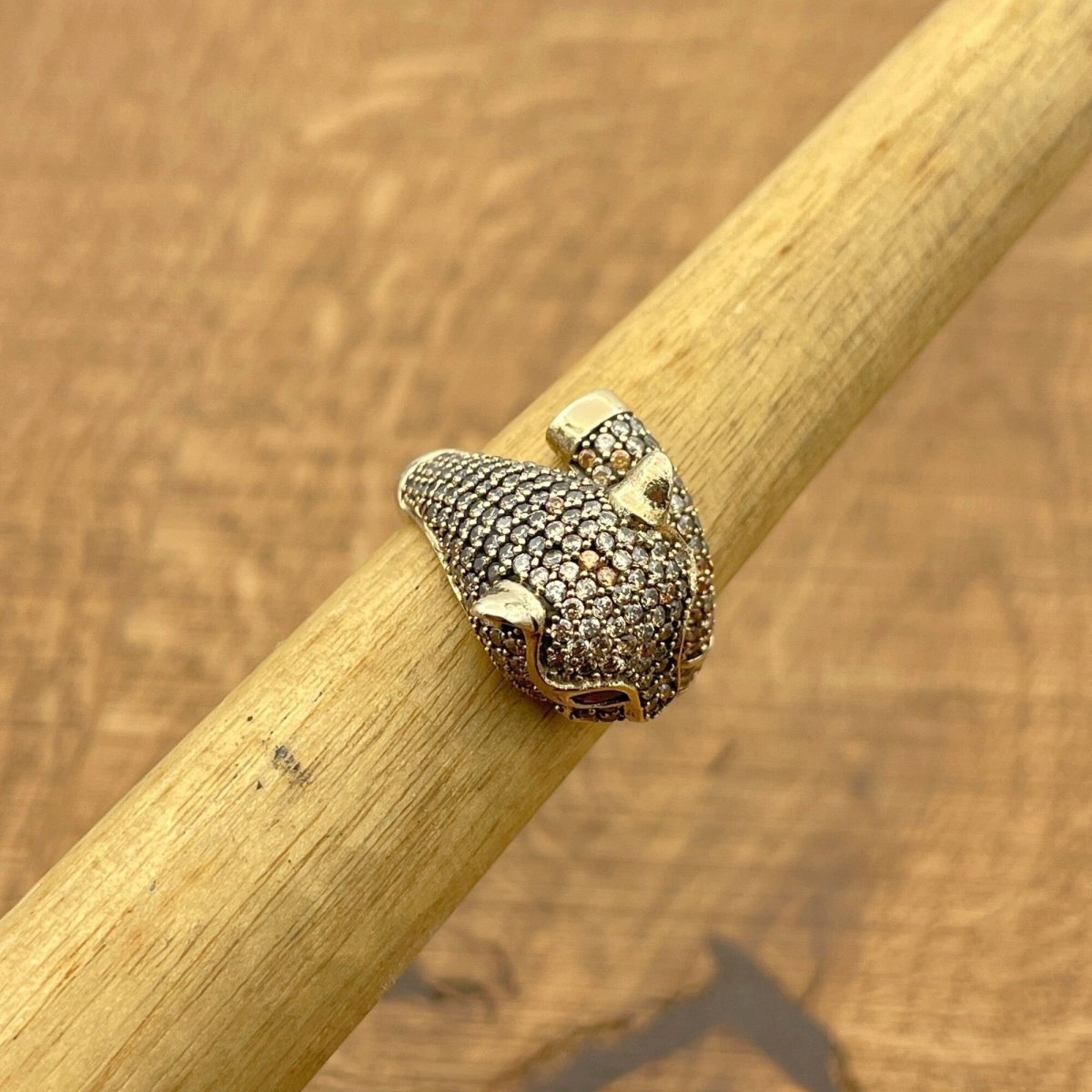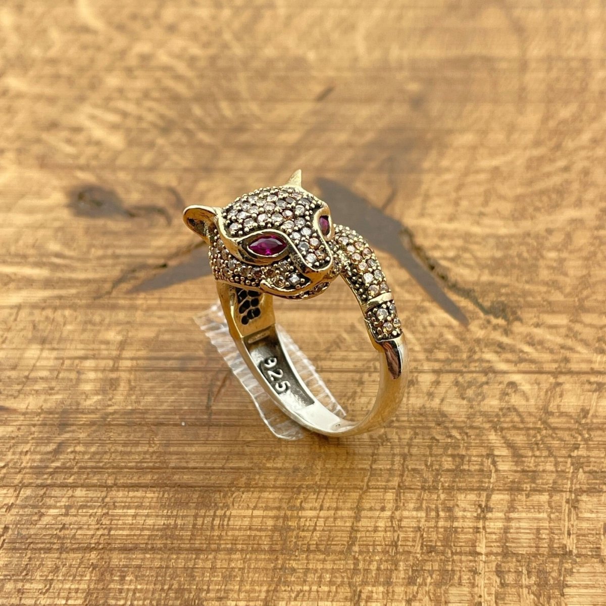 • Striking Citrine Stone: Features a vibrant yellow citrine stone with a bold tiger head design.