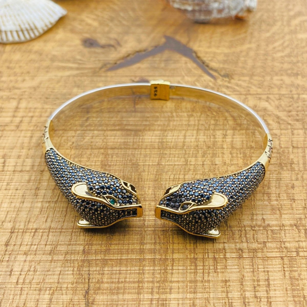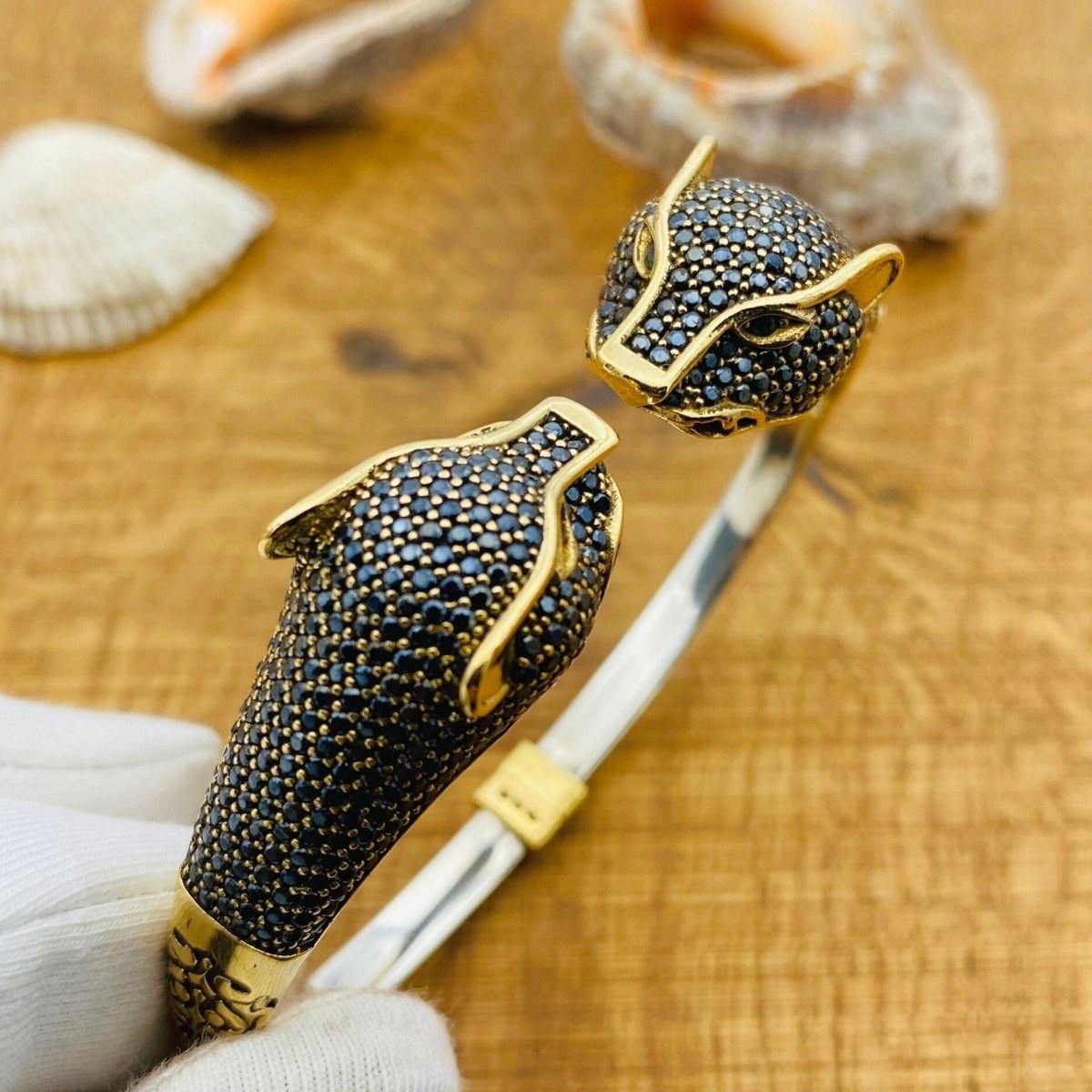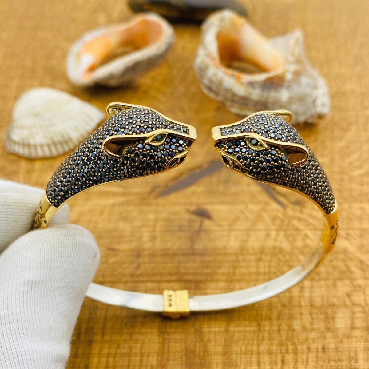 Handmade 925 Sterling Silver JewelryThis striking black onyx tiger bracelet features a bold animal figure design. Made with 925 sterling silver, it's perfect as a gift for her.