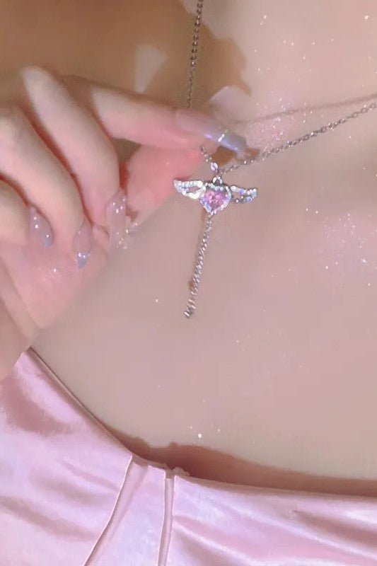 Surprise and delight with the Pink Stone Necklace with Moving Wings, a captivating piece that adds a touch of playful elegance to any look. This necklace features a delicate stainless steel chain adorned with a stunning pink stone, its heart-shaped cut shimmering with captivating brilliance. But the true magic lies within - the wings delicately attached to the heart flutter with every movement, adding a touch of whimsical charm that's impossible to resist.