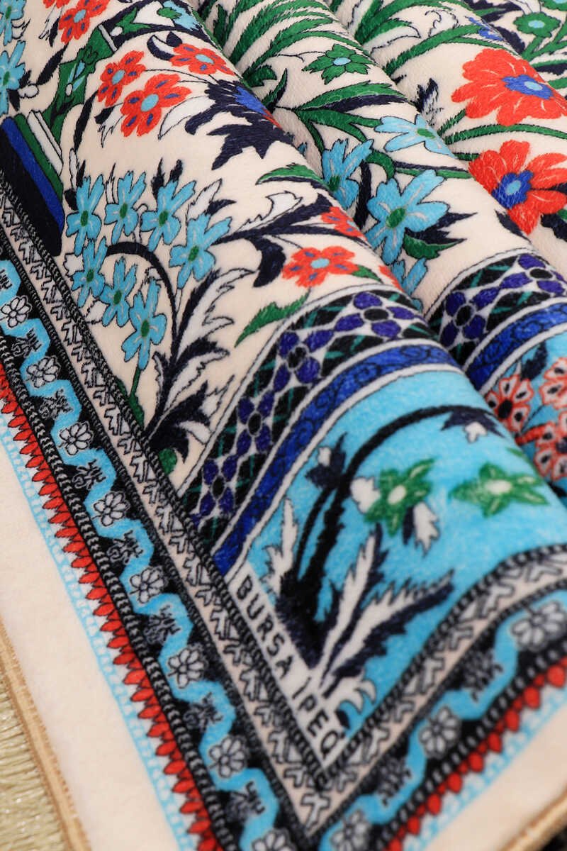 Introducing the Bursa Ipek Ecru Bamboo Carpet Prayer Rug – a luxurious addition to your home decor. This beautifully crafted prayer rug combines the traditional motifs of Turkish art with modern elegance, offering both style and comfort.