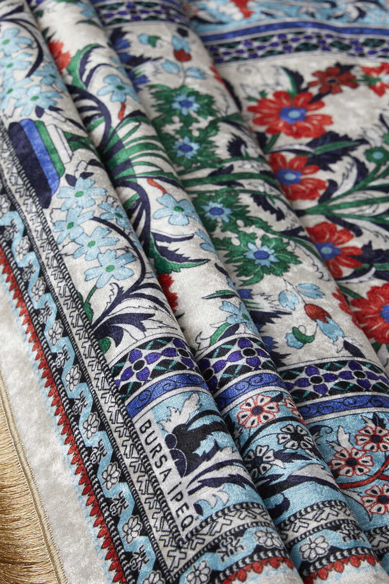 Elevate Your Space with Bursa Ipek | Ecru Velvet Carpet Prayer Rug