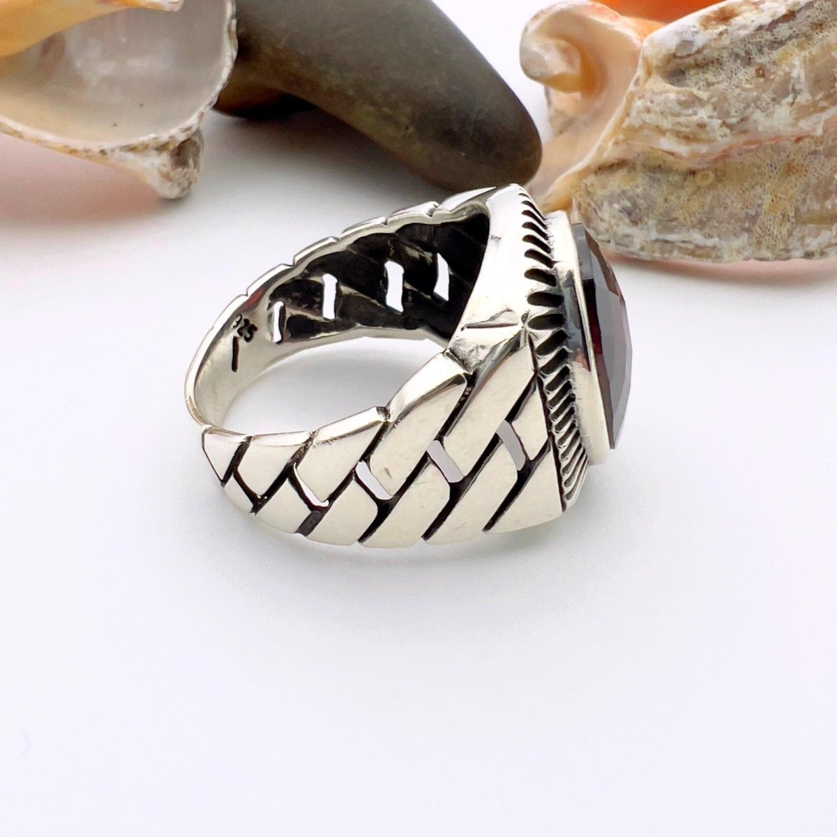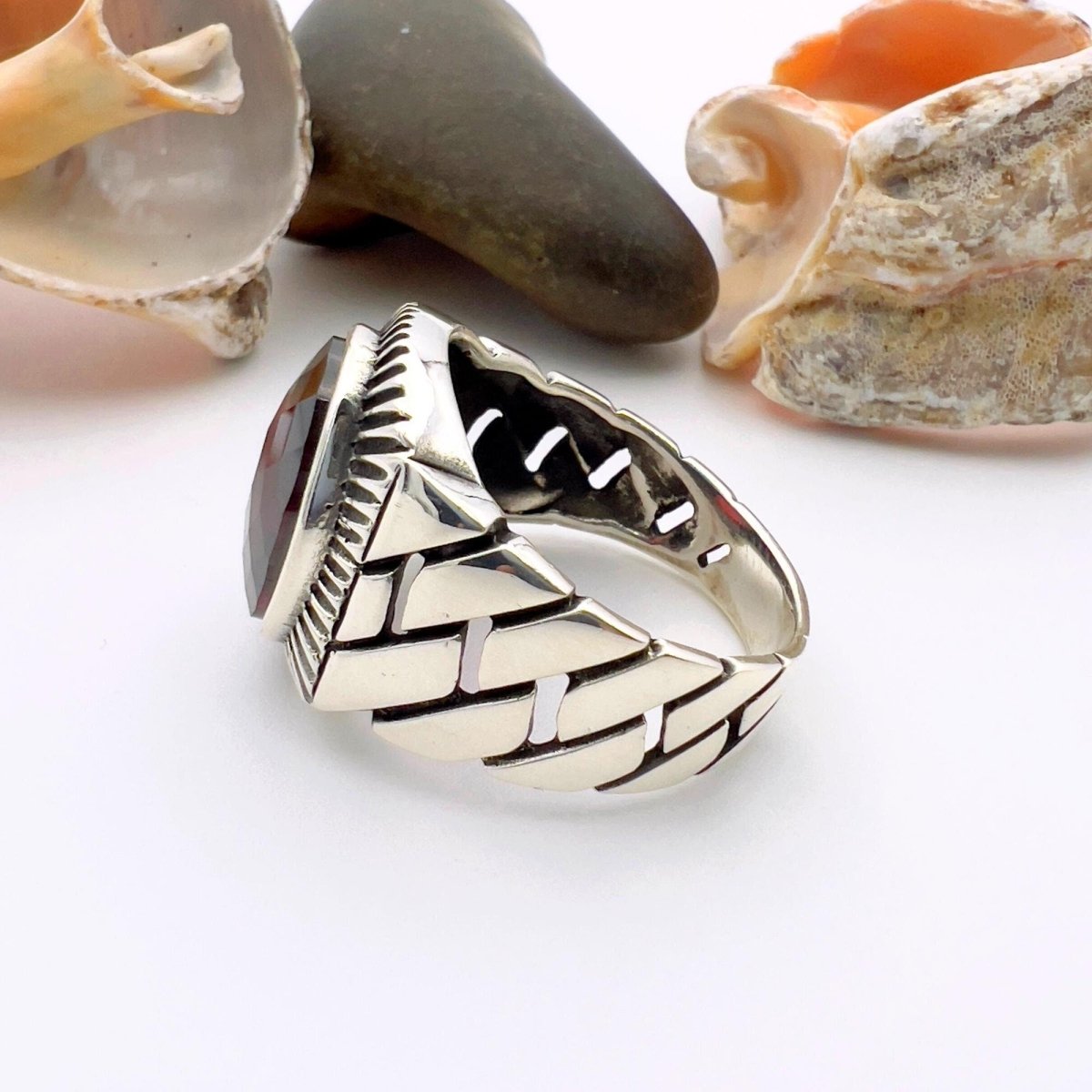 • Handcrafted Turkish silver ring with red oval ruby stone