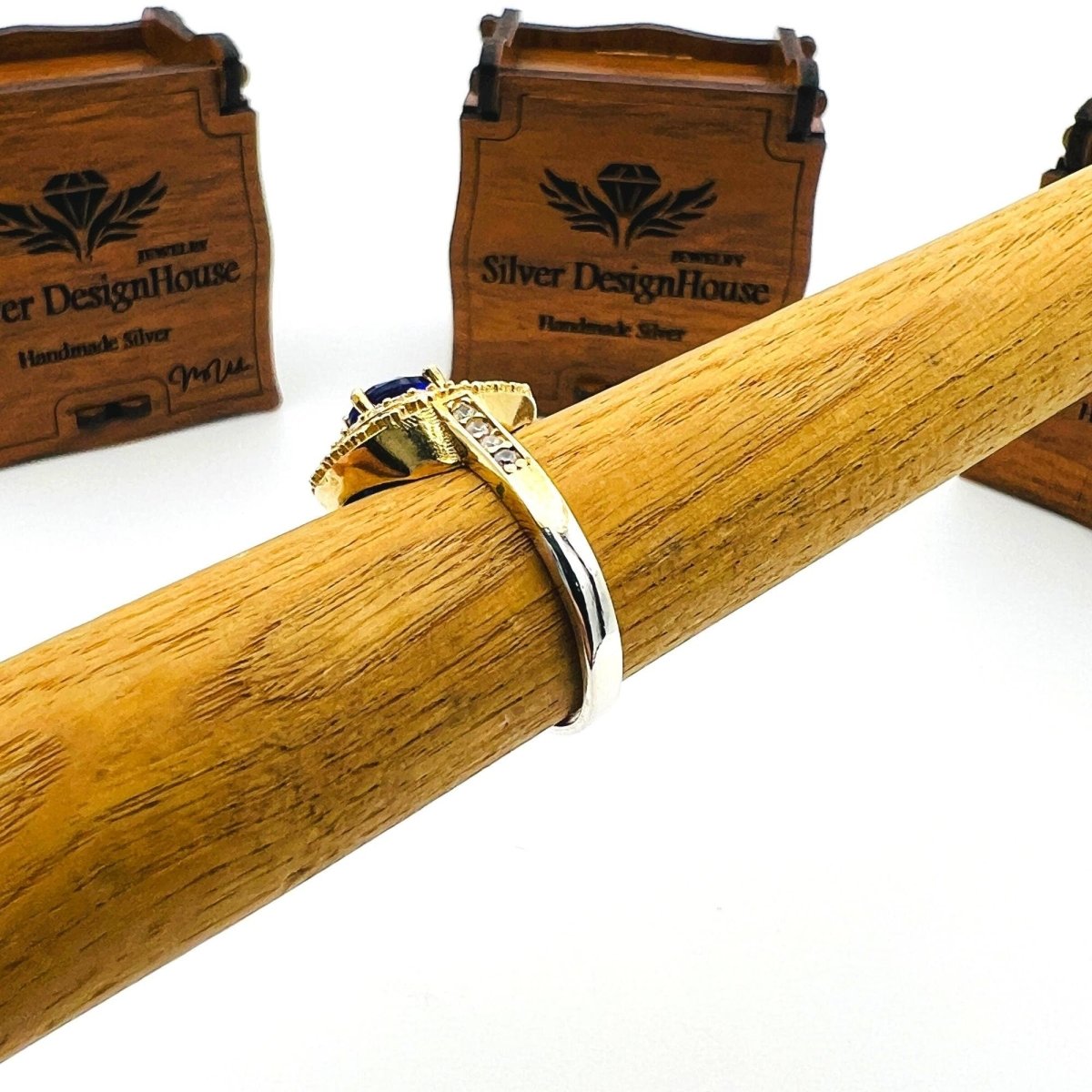 Women's Blue Sapphire Stone Ring - Turkish Handmade Sterling Silver